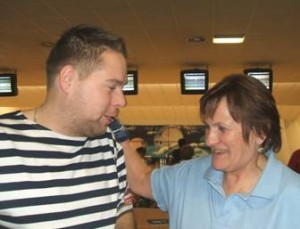 snímku (Lukáš hodil 245) mu domlouvá Dana Bednářová, jestli se nad sebou nezamyslí, změním mu pruhy z vodorovných na svislé. Lvíčata mohla dopadnout ještě hůř, nebýt výhry na 418 bodů, což byl nejnižší výkon, na který se vyhrálo. Esab D získal několik štamprlat (Honza tři, maminka Vlasta jedno) za červené strajky, bodů jenom pět. Může za to i porážka o šest bodů od Kačerů, byla to nejtěsnější porážka dne. Honza za to nemůže, je to třetí nejlepší hráč ligy, tak nevím na koho to svést. Ono ale není co svádět, Esab má devítibodový náskok nad dvěma posledními týmy, z nichž jsou na tom díky skóre lépe Kmotři. Ti vydřeli osm a půl bodu o což se přičinil hlavně Lukáš Vaněk, který měl třetí nejvyšší průměr jednotlivců tohoto dne. Celkově je jedenáctý, Kmotr Zdeněk Šimek je osmý nejlepší hráč ligy. Třetí desítku jednotlivců zahajuje nejlepší hráč Slavie B, Jarda Beneš. S Frantou Ludvíkem a Pepou Vondrkou (mým žákem, včera jsem ho dával, já blbec, za příklad jiným) získal čtrnáct bodů, takže jejich jistý sestup už není tak jistý. A to je vše,